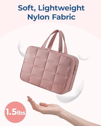 𝐏𝐮𝐟𝐟𝐲 𝐌𝐚𝐭𝐞𝐫𝐢𝐚𝐥𝐬: Hanging Toiletry Bag is made of puffy fabric and weighs only 1.1lbs-1.5 lbs. Super soft, lightweight nylon fabric provides all-day carry comfort