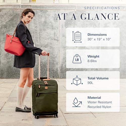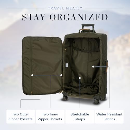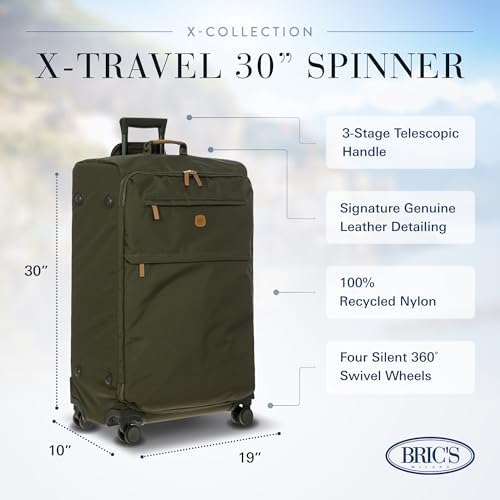 Style and function merge with Bric’s X-Bag Spinner with Frame – 30 Inch roller suitcase, made from Polyamide with PVC Coating that includes a durable satin finish making this travel suitcase water-resistant and easy to clean. With perfect portability, this suitcase features a flexible frame that is sturdy and spacious enough to accommodate 4-5 day trips. Board any flight, train, or cruise and identify your checked bag immediately with our trendy and elegant accents made from genuine Tuscan leather and an easy-to-use lightweight aluminum pull-handle system for quick and smooth functionality. Get on the go with this spinner luggage complete with convenient and easily accessible dual zip front pockets, a roomy interior with two pockets, and elastic straps to secure all of your belongings. Enjoy a smooth and calm travel experience with our chic, ultra-light, and practical luggage with noiseless, dual swivel wheels for seamless mobility at any travel hub. We are inspired by the sweet moments in life where adventure and luxury meet–unlock your next journey with Bric’s designer luggage.