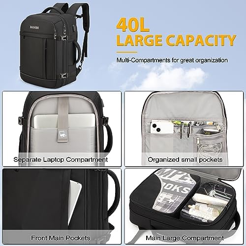 【Expandable Travel Backpack】With an expandable capacity that goes from 22L to 40L, you’ll have all the space you need for 3-5 day trips or everyday commuting, giving you the freedom to take everything you need with you. And this carry on backpack meets IATA-approved size requirements, you can easily store it in the overhead bin or under your seat without any hassle. Whether you’re traveling around the world or just around town, It is the perfect companion for your next adventure.