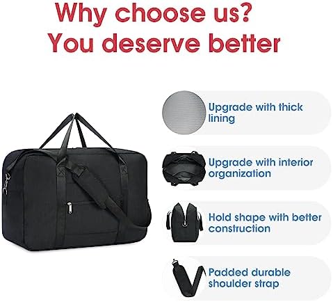 ✅ EASY CARRYING- It comes with a padded shoulder strap, which gives you a more comfortable usage experience. The pouch as a strap enables the duffel to fit over the handle of common suitcase 18 20 24 26 28 32 inch for easy carrying.