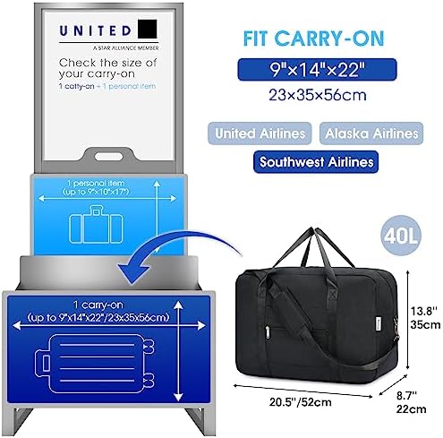 ✅ Fit Carry-on Bag Size – Bag size 20.5 x 13.8 x 8.7 inch fits carry-on item size 22 x 14 x 9 inch of United Airlines, Southwest Airlines, Alaska Airlines perfectly, which could be fitted into the overhead bin.