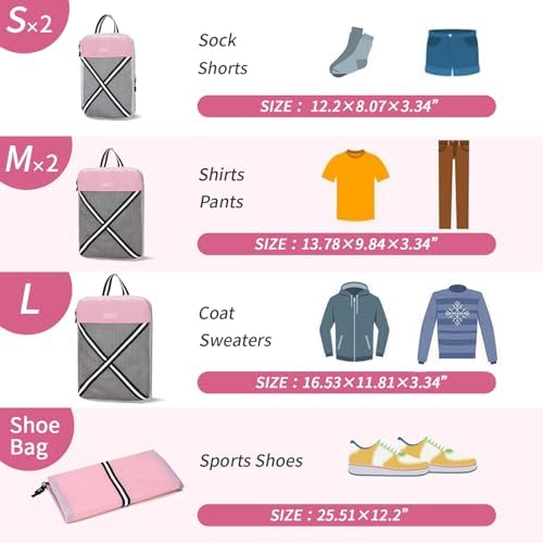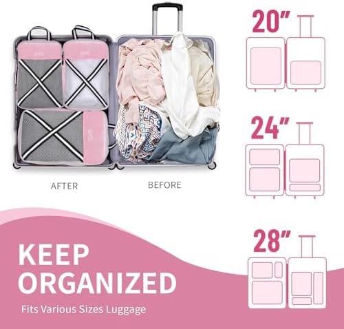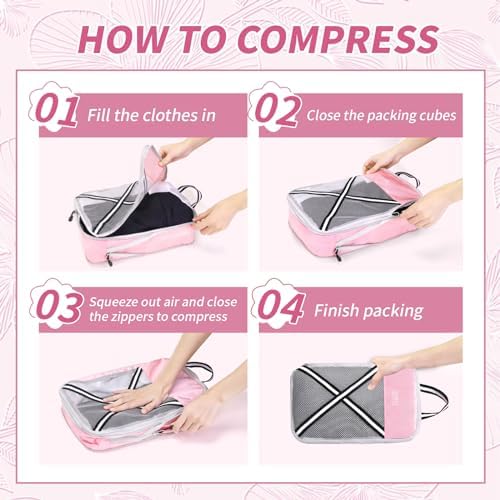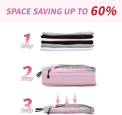 Compression Packing Cubes Suitcases Organizer: 2/4/6 Sets Travel Storage Bags for Luggage – Travel Essentials for Space Saver Pink