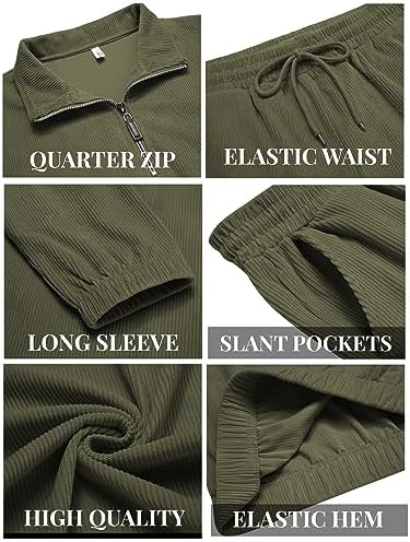 Home Travel Clothing COOFANDY Men’s 2 Piece Outfits Casual Long Sleeve Quarter Zip Polo Shirt Corduroy Pant Sets Fall Fashion Tracksuits