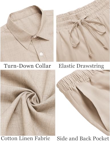 Home Travel Clothing COOFANDY Men’s 2 Pieces Cotton Linen Set Short Sleeve Button Down Shirts Summer Beach Shorts Casual Outfits