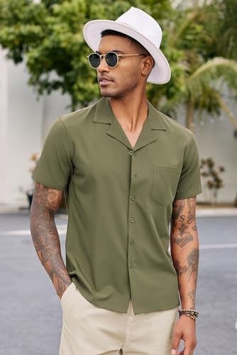COOFANDY Men’s Casual Button Down Shirts Short Sleeve Cuban Collar Shirt Summer Beach Wear
