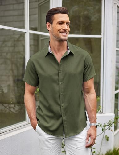 Mens Linen Shirt Short Sleeve Button Down Shirts