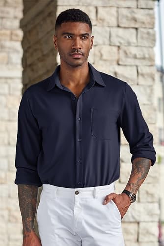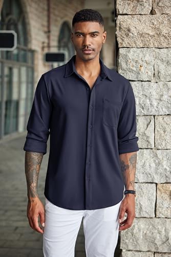 COOFANDY Men’s Stretch Button Down Shirts Muscle Fit Long Sleeve Solid Shirts