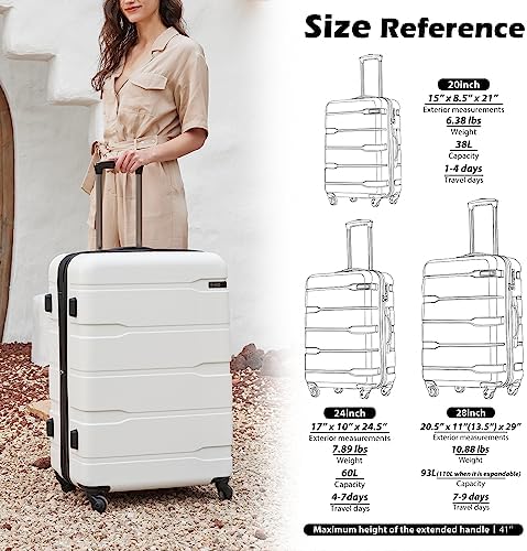 Three different size: Size: 20inch (21 x 8.5 x 15), 24innch (17 x 10 x 24.5) 28inch (20.5 x 11x 29), Please note that ONLY 28in is Expandable, adding 15%to the scalable space.
