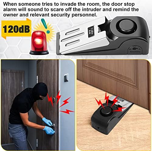 When someone tries to invade the room, the door stops alarm will sound a 120dB alarm and scare off the intruder, while reminding the owner of the room to pay attention to safety, when the security threat is lifted you can manually turn off the door stoppers alarms and you can set the defense again.