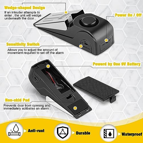 Multi-Purpose – The security door stops are very portable and you can use them at home, hotel, apartment, company, etc. You can also give it to your children and family. The door stop alarm will provide you with safety when traveling or on business.