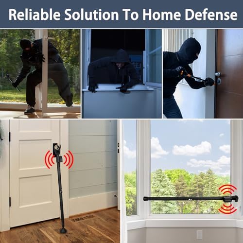 Home Travel Safety and Security Door Security Bar & Sliding Patio Bar with Alarm, Adjustable Window Jammer – Heavy Duty Door Stopper for Home, Apartment, Travel