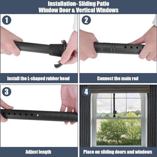 【Adjustable and Easy to Install】There is virtually no installation, just set it in the track. Sliding door security bar consisted of telescoping and splicing extension rod, allowing for easy adjustment to fit various door and window sizes. It is also incredibly easy to disassemble and install, making it a convenient choice for any homeowner. Before installation, adjust the length of the window bar by pressing a button, then pop the pin to lock the height in place.