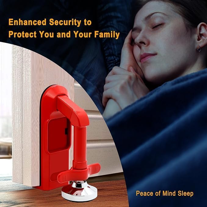 Home Travel Safety and Security Door Stoppers Security – Portable Door Lock for Travel Anti Theft Door Blocker, Hotel Room Apartment Safety – No Drill Garage Door Brace Devices for Women, Children, Red, Z7TWSJR