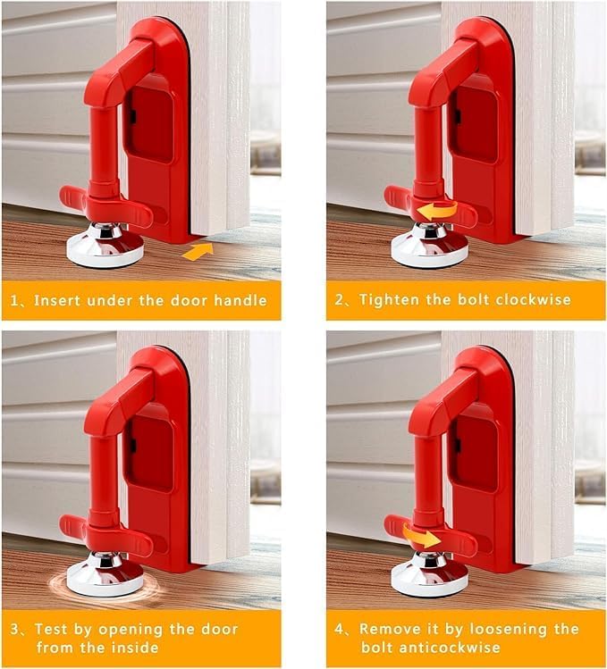 Category: Travel Safety and Security Tags: Anti, Apartment, Blocker, Brace, Children, Devices, Door, Drill, Garage, Hotel, Lock, Portable, Red, Room, Safety, Security, Stoppers, Theft, Travel, travel safety and security, Women, Z7TWSJR
