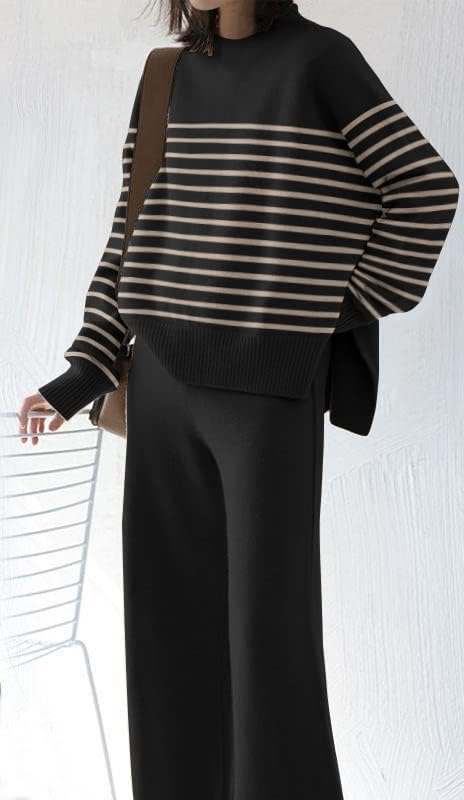 ETCYY NEW Womens Elegant Lounge Sets Knitted Sweatsuit Sets 2 Piece Outfits with Sweater Tops and Wide Leg Sweatpants