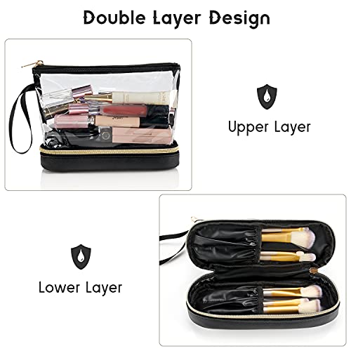 【Double-layer Design】The upper cosmetic bag can put lipstick, eye shadow, loose powder, liquid foundation, bb cream, eyebrow pencil, eyeliner, etc.The lower layer can put make up brush, Eyeliner, eyebrow pencil, etc.It can meet the daily needs of going out.