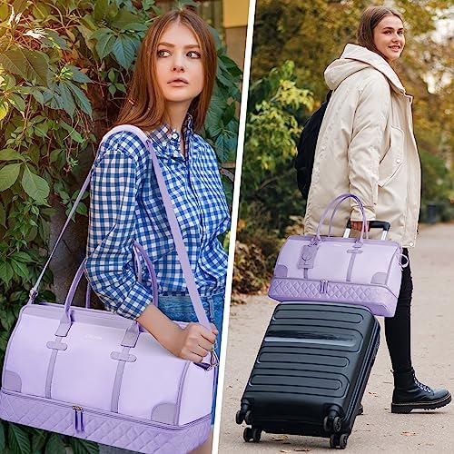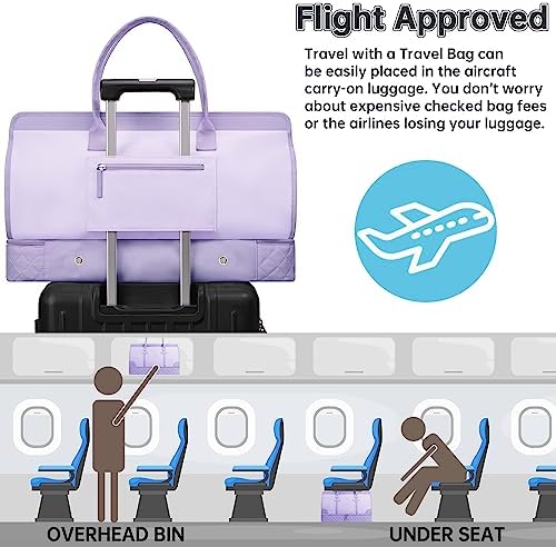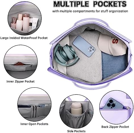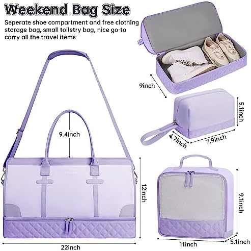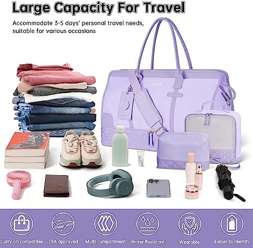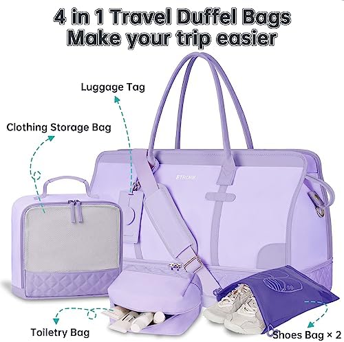 Home Luggage and Bags ETRONIK Weekender Overnight Bag for Women, Large Travel Duffle Bag with Shoe Compartment & Wet Pocket, Carry On Tote Bag Gym Duffel Bag with Toiletry Bag, Bag for Hospital 4 Pcs Set, Purple