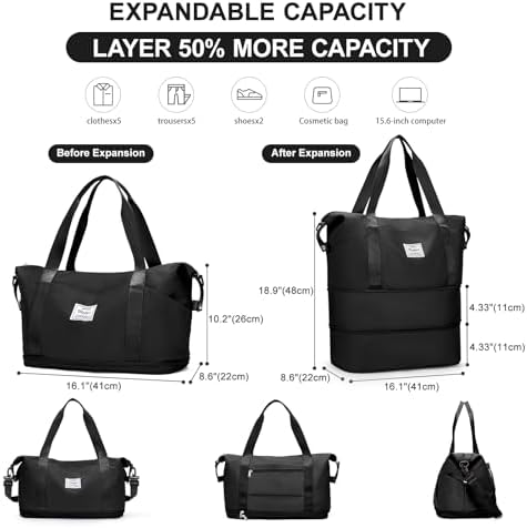 【Stylish Carry On Tote Bag】Elevate your travel style with our expandable tote gym bag. Not only does it serve as a spacious carry-on option for your essentials, but its chic design adds a touch of flair to your travel ensemble. Stand out with a bag that’s both fashionable and functional