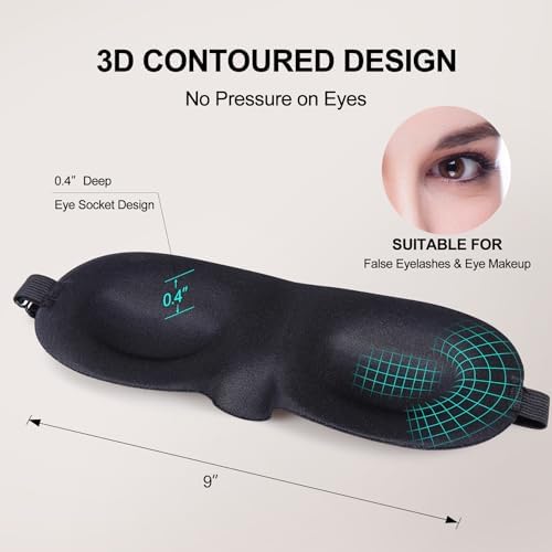 Sleep Mask for Women Men, Ultrathin Light Blocking Sleeping Mask, No Pressure On Eyes 3D Contoured Blindfold, Soft Comfort Eye Shade Cover for Travel/Naps/Yoga/Shift Work.(Black)
