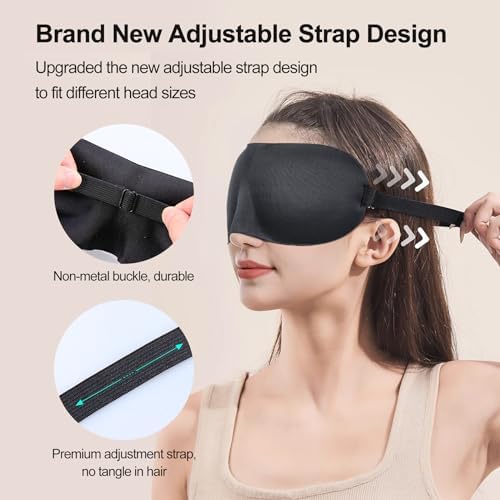 This sleep eye mask is suitable for women and men with improved adjustable strap, easy to adjustable and fits most head shapes, do not worry on sleep experience or catch hair.