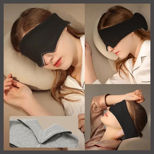 The Ergonomic Sleep Mask Design with Soft Mose Section Contours to Your Face and Prevents Bright Light Going Through Eyes and Bottom, Ideal Light Blinder for Men and Women.