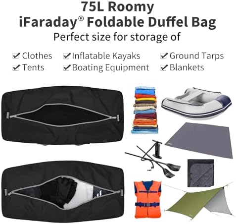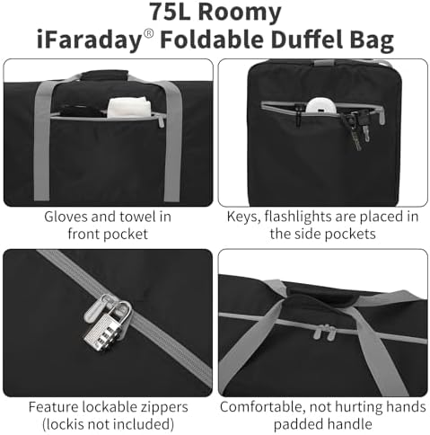 LIGHTWEIGHT & ROOMY TRAVEL DUFFEL BAG: Up to 75L capcacity with one front zipper pocket, one side zipper pocket, total weight of this travel duffle bag is only about 0.52lbs.