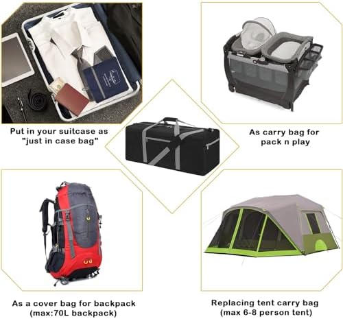 FUNCTIONAL FOLDABLE DUFFEL BAG: This foldable travel duffel bag fits graco pack and play well, also can be a nice tent bag replacement.