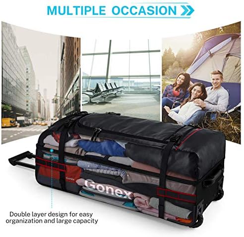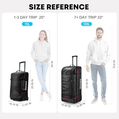 【Wide Applications】This durable rolling duffel bag with 100L capacity is perfect for travel, long trip, camping, self-driving trip and other outdoor activities.