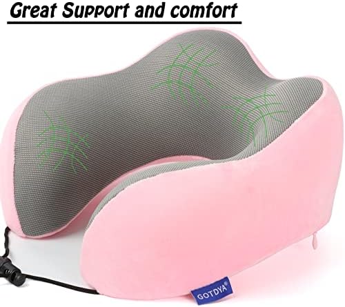 Home Comfort and Sleep Aids GOTDYA Travel Pillow,Travel Neck Pillows for Sleeping,100% Pure Memory Foam Soft Comfort & Support Pillow for Airplane/Car/Office&Home Rest Use-Pink