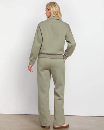 GRAPENT 2 Piece Sweatsuits for Women: Half Zip Sweatshirt & Wide Leg Sweatpants