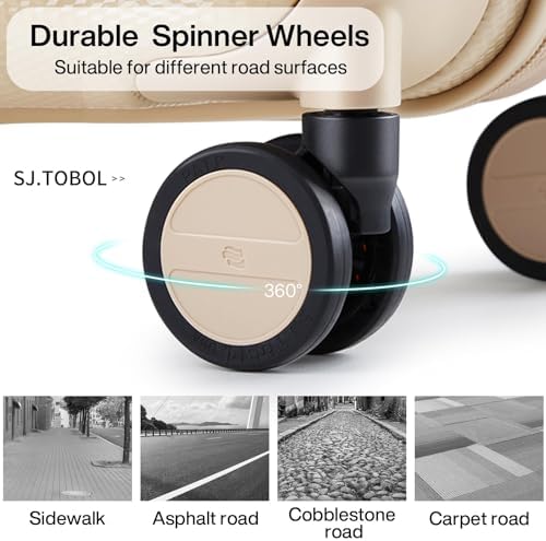 【High Quality Accessories】SJ . TOBOL durable spinner wheels,It is composed of precision shaft center and thickened TPE wheel skin, which is very wear-resistant,quieter and has strong bearing capacity, It is applicable to different roads such as cobblestone road and carpet road. Smooth and durable 5-strand reinforced explosion-proof YKK zipper reverse coil prevents burst zipper. TSA-approved combination lock is safe and convenient. Ergonomics telescopic handle with multi-steps adjustment.