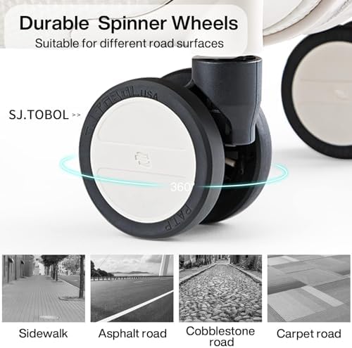 【High Quality Accessories】SJ . TOBOL durable spinner wheels,It is composed of precision shaft center and thickened TPE wheel skin, which is very wear-resistant,quieter and has strong bearing capacity, It is applicable to different roads such as cobblestone road and carpet road. Smooth and durable 5-strand reinforced explosion-proof YKK zipper reverse coil prevents burst zipper. TSA-approved combination lock is safe and convenient. Ergonomics telescopic handle with multi-steps adjustment.