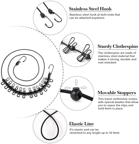 Used to hang different types of clothes such as towels, cloth diapers, underwear, socks as well as bathing suits. Those that love traveling, camping, swimming, fishing, boat riding etc. can use it between the trees or in their canopy to attach wet towels and trunks. Moreover, it is capable of retracting, hence, can save a lot of space when not in use. It can be stored with ease as it takes the least space in a traveler’s backpack.