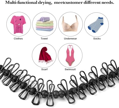 What makes it unique is the black clips that restrain the 12 pieces of clothespins from sliding. Therefore, clothes won’t glide to the center. Again, the clips can be moved smoothly from left to right and vice versa by press and hold the little button on the top of the clips. Those who prefer the freshness of line dried linen can rely on this clothesline. It can be used in hot, humid, wet and dry environments.