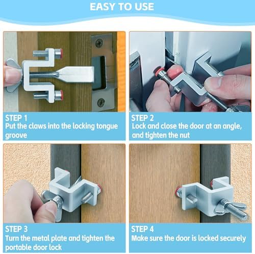 💪Sturdy portable door lock: Made of heavy-duty SUS 304 stainless steel, long service life.