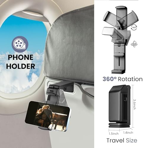 An essential for air travel, this phone stand clamps onto anything up to 1.5in with its adjustable strong clamp, universal for most phones, This phone mount enables handsfree watching. and has a 360-degree multi-directional rotation. It folds easily to fit your pocket, Making it the best travel gadget and flight essential for watching videos on airplanes.