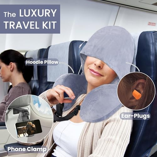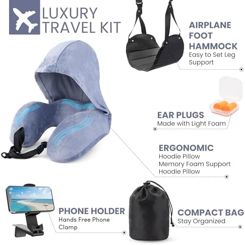 Experience the comfort of our Flywish Premium Quality Memory Foam Hoodie Travel Pillow, featuring our patented design that effectively blocks out light, eliminating the need for a sleep mask, and providing you with an easier and more relaxing sleep