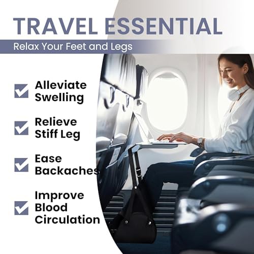 Put an end to discomfort with this travel footrest. Our foot rest is adjustable to any length, suitable for adults & kids of all sizes, Simply wrap it around the tray in front of you, and adjust the strap to your desired length. It will relieve back pain and increase blood flow. Lightweight, effective, and easy to set up!