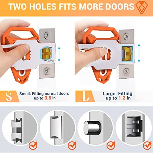 🛒Multi-size to Fit Most Types of Doors–The upgraded hotel door lock now has bigger (1.2 inch) and smaller (0.78 inch) holes to fit different locks, whether in hotels, apartments, dorms, bathrooms, or bedrooms. Then no one could get in and in case of an emergency you could remove the lock in seconds! Add a portable door lock to provide you with a strong sense of safety.
