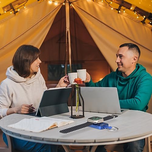 Daily use portable travel cargador for Apple watch, mini small compact charms body easy carry into your purse and key chain hook on car keys, charging watch on the desk or nightstand, with friend chat drink coffee break, office work and meeting, Weekend trips and family picnics, while sleeping.
