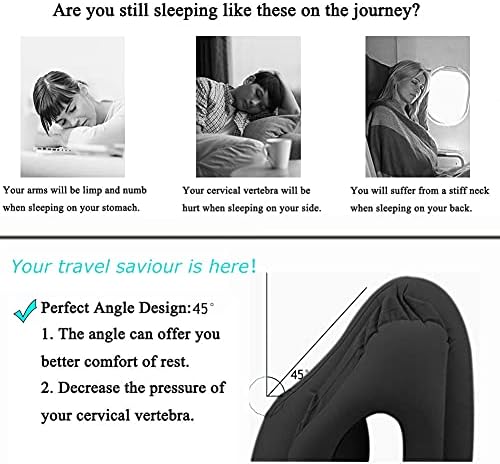 Get rid of pain and bad posture: Poor posture can cause cervical damage and damage the sciatic nerve and coccyx. According to reasonable ergonomic principles, we define the neck pillow as a pillow that not only wraps around the neck, but also maintains the correct relationship between the head, neck and shoulders during sleep. This inflatable travel neck pillow can help you avoid injury and insomnia.