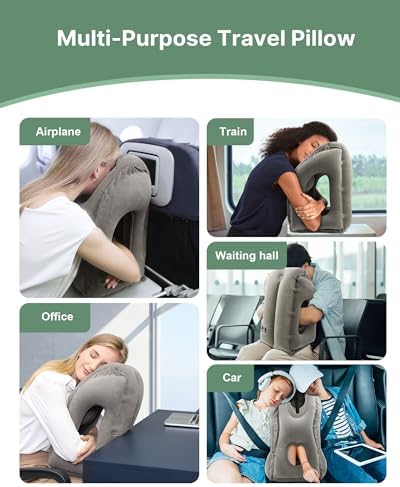 Versatile and Considerate Design: The hollow middle design of the inflatable airplace pillow conforms to the curve of the human abdomen. Cautouts on both sides let you comfortably hold the inflatable plane pillow and relax your arms. Enjoy listening to music or watching videos with ease while using this inflatable airplane pillow.
