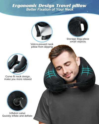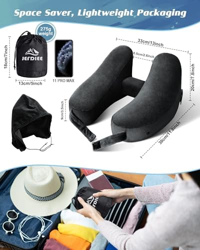 🛫Lightweight and Portable: JefDiee travel pillow for airplanes is designed for portability and comfort. When deflated, the neck support pillow can be compressed to a smaller size and attached to carry-on luggage without taking up extra space. The neck pillows for travel comes with a travel bag, which protects your travel pillow from dust and dirt. Airplane travel pillow is lightweight and easy to store in a suitcase or backpack, ready for your next business trip.