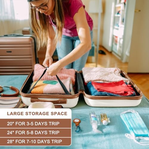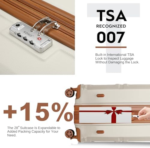 【3 PIECES HARD SPINNER LUGGAGE SET DIMENSIONS】Overall: 20in: 21.7″ x 15.7″ x 8.7″; 24in: 26″ x 17.7″ x 10.2″; 28in: 29.4″ x 18.9″ x 11.6″. Weight: 21.7 lbs. CAPACITY: 20in38L 24in64L 28in90L(+15%). Kono hardside spinner luggage 20 inch(Meets carry-on size restrictions for those traveling domestically and looking to stay light.), 24 inch/expandable 28 inch(Maximize your packing power and the ideal checked bags for longer trips.), can be stored one into another. Perfect for work travel, vacations, or as international carry-on!