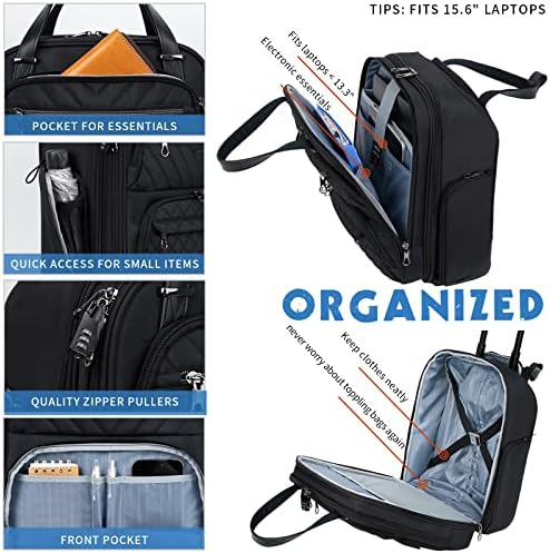 MULTI- FUNCTION PERSONAL BAG: Spacious main compartment works well for clothes/shoes. Features a padded laptop compartment that fits laptops up to 15.6 inches. Easy-access front organizer for small items. Both sides with zipper pockets for the battery and water bottle.