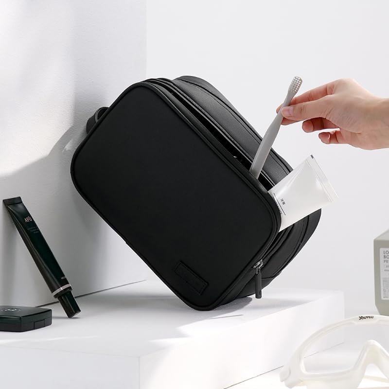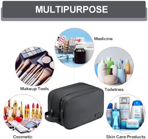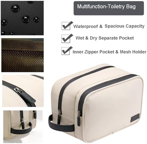 【ORGANIZED COMPARTMENTS】Two-compartment-design. Main compartment which is waterproof can well pack something wet like facial cleanser, travel shampoo, washcloth, toothbrushes, toothpaste, shaving cream and other toiletries. Another compartment is suitable for something dry like razors