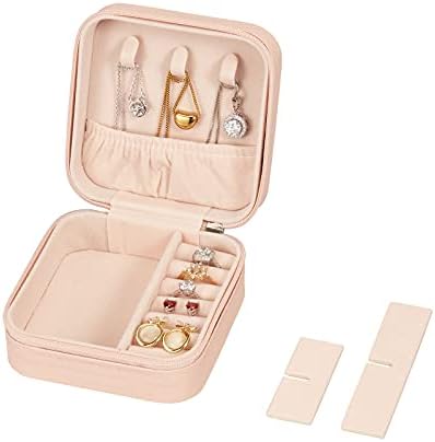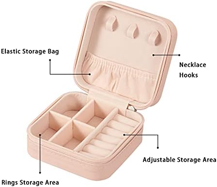 Travel Jewelry Case, Mini Portable Jewelry Travel Boxes, Small Jewelry Organizer for Rings, Earrings, Pendants, Watches, Necklaces, Lipsticks Organizer Storage Holder Case (Pink)