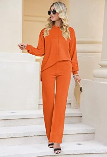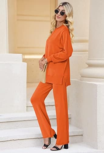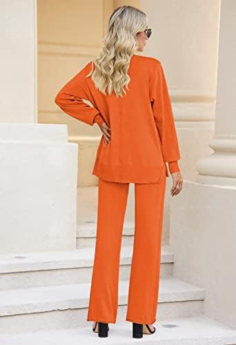 Linsery Womens Tracksuit Rib Knitted Deep V Neck Wide Leg Pants 2 Pieces Sweatsuit