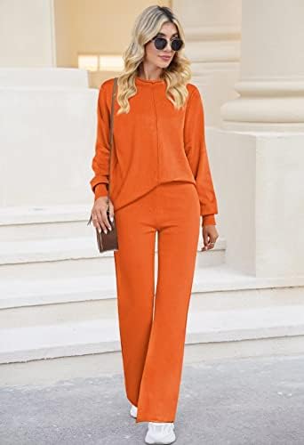 Linsery Womens Tracksuit Rib Knitted Deep V Neck Wide Leg Pants Set 2 Pieces Sweatsuit Leisure Wear