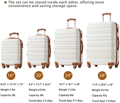 4-piece luggage comes with a TSA-approved combination lock for security of your belongings.